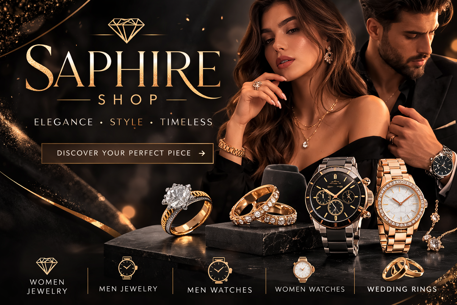 At Saphire Shop, we offer a curated collection of stylish accessories including women’s jewelry, men’s jewelry, men’s watches, women’s watches, and elegant wedding rings. Our goal is to provide timeless pieces that combine quality, style, and affordability